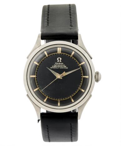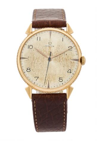 Omega: "Glossy gilt dial" of steel, ref. 2584-1. Mechanical movement with automatic winding, cal. 354. 1952.