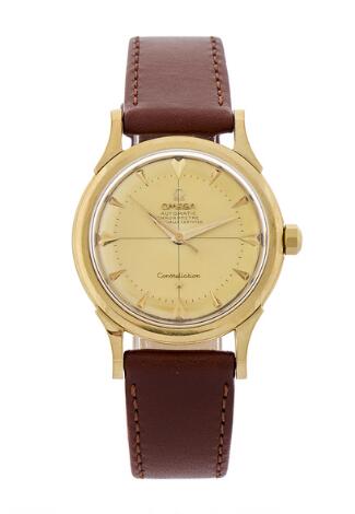 Omega: Constellation "Pie Pan De Luxe" in 18k gold, ref. 2699. Mechanical bumper movement with automatic winding. 1952