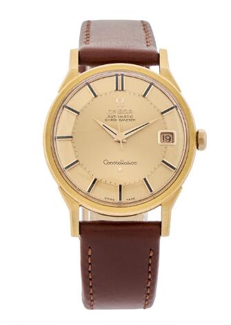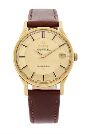 Omega: Constellation in 18k gold, ref. 168.010/11. Mechanical movement with automatic winding and date display, calibre 564. 1966