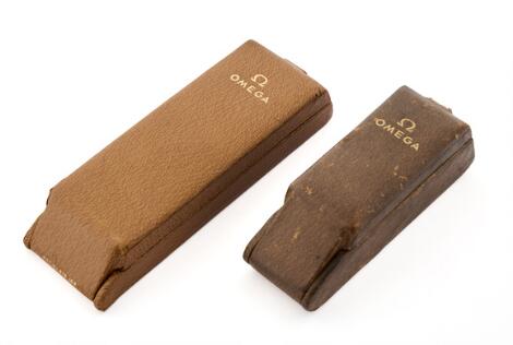 Omega: Two leather boxes. They measure 16.5 x 5 x 2.7 cm and 12.2 x 3.4 x 4 cm accordingly.