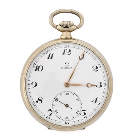 Omega: "NOS" pocket watch of steel. Mechanical movement with lever escapement and crown winding, cal. 38.5L.T1.