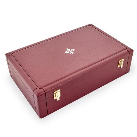 Patek Philippe: Leather box for 12 watches with tray. Measures 39.5 x 25.5 x 10.5 cm.