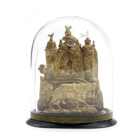 2549/122Zappler miniatureur af presset og forgyldt metal med et slot og en dreng. Østrig. 19. årh.s anden halvdel. H. 11,5.