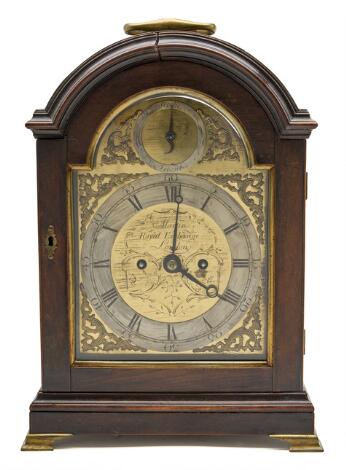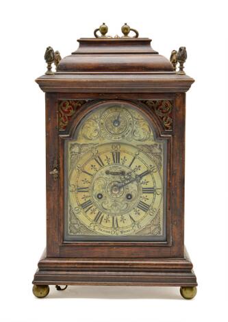 2549/30Østrigsk lygteur i kasse af mørkpoleret træ, skive af forgyldt ciseleret messing. Sign. Forstner Wienn. 18. årh. H. 40. B. 24. D. 17.