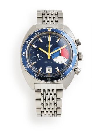 931/218LyngbyHeuer: Skipper "First execution" in steel, ref. 73464. Mechanical chronograph movement with manual winding and date, cal. Valjoux 7734. 1971–73.
