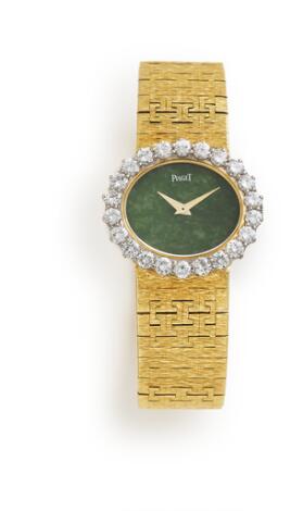 931/244LyngbyPiaget: "Jade Dial" of 18k gold, ref. 9330 A 6. Mechanical movement with manual winding. 1970s.
