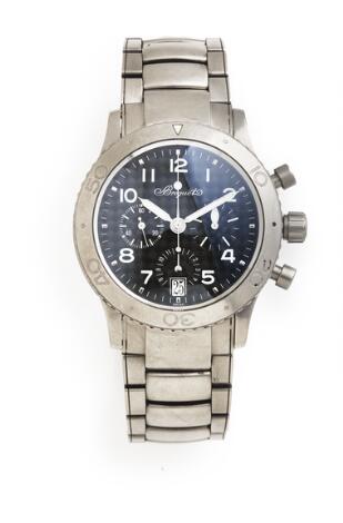 931/227LyngbyBreguet: Type XX Transatlantique of titanium, ref. 3820TI. Mechanical flyback chronograph movement with automatic winding and date, cal. 582. 2010s.