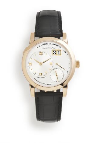 931/217LyngbyA. Lange & Söhne: Lange 1 in 18k rose gold, ref. 101.032. Mechanical movement with manual winding, date and power reserve indicator, cal. L901.0. 2002.