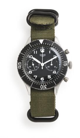 931/228LyngbyHeuer: "Luftforsvaret" in steel, ref. 1550 SG. Mechanical flyback chronograph movement with manual winding, calibre Valjoux 230. 1972