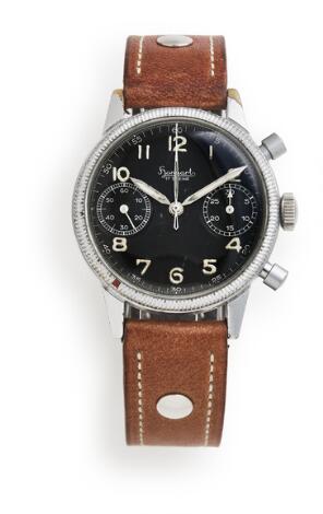 931/226LyngbyHanhart: "Bundeswehr" of chromed brass, ref. 417. Mechanical flyback chronograph movement with manual winding, cal. 15. 1955-58.
