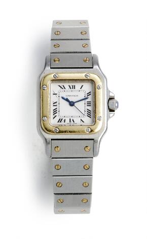 2550/2064LyngbyCartier: Santos Galbée of 18k gold and steel. Mechanical movement with automatic winding. 1980s.