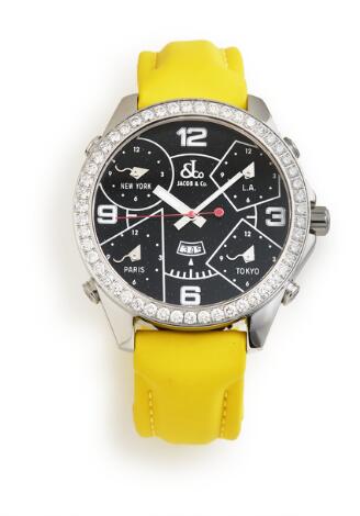 931/261LyngbyJacob & CO.: Five Time Zones in steel and diamonds, ref. JC-2D. Quartz movement with four additional time zones and date. 2013.