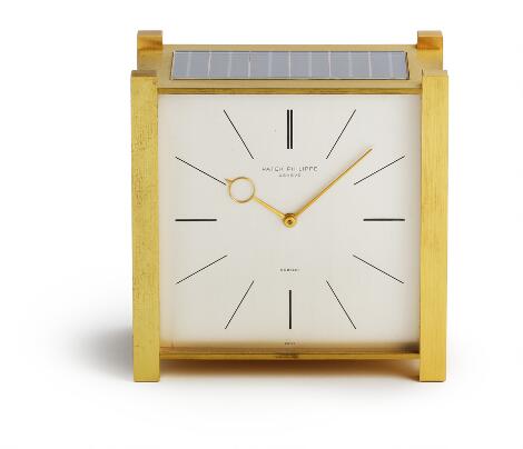 931/277LyngbyPatek Philippe: Pendule Carrée in gilt brass, ref. 902. Mechanical movement with solar panel, calibre 17-250E. 1960s.