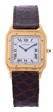 931/298LyngbyCartier: Santos Dumont "Paris Dial" of 18k gold, ref. 96054. Mechanical movement with manual winding. 1981.