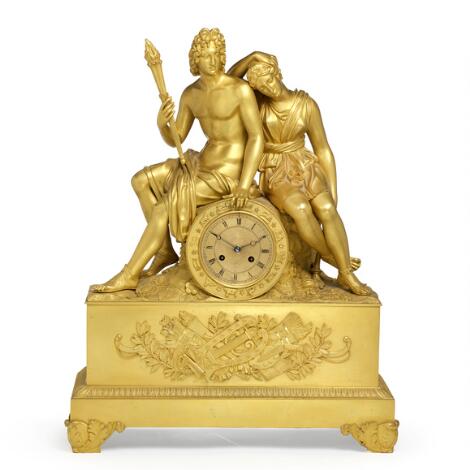 2551/3054LyngbyA Charles X figural table clock. The dial is signed 'Nicoll a Paris'. France, ca. 1825. H. 53 cm. W. 44 cm. D. 12 cm.