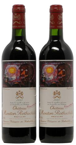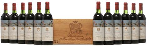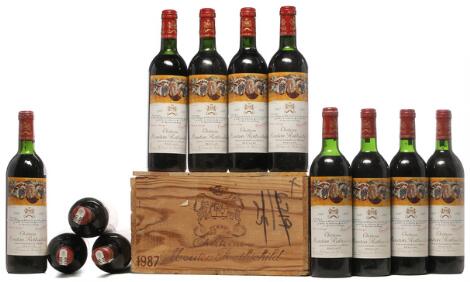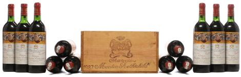 2548/3112Glostrup2 bts. Château Mouton Rothschild, Pauillac. 1. Cru Classé 1987 A-A/B (bn). Owc. etc. Total 12 bts.