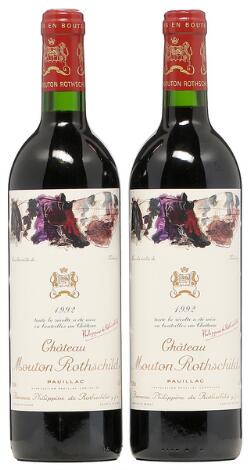 2548/3116Glostrup2 bts. Château Mouton Rothschild, Pauillac. 1. Cru Classé 1992 A (hf/in).