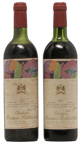 2548/3097Glostrup2 bts. Château Mouton Rothschild, Pauillac. 1. Cru Classé 1975 B (ts/us).