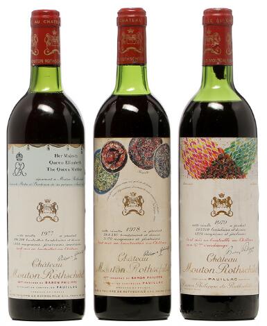 2548/3098Glostrup1 bt. Château Mouton Rothschild, Pauillac. 1. Cru Classé 1977 A/B (ts). etc. Total 3 bts.