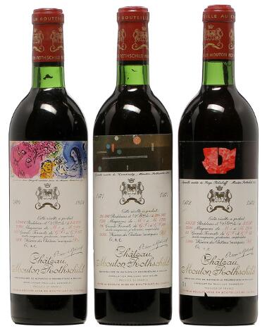 2548/3111Glostrup3 bts. Château Mouton Rothschild, Pauillac. 1. Cru Classé 1987 A-A/B (bn). Owc. etc. Total 12 bts.