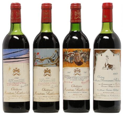 2548/3100Glostrup1 bt. Château Mouton Rothschild, Pauillac. 1. Cru Classé 1980 B/C (us). etc. Total 4 bts.