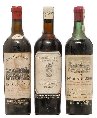 2548/3260Glostrup1 bt. Château La Tour Cadet, Saint-Émilion 1. Cru Classé 1945 A/B (ts). etc. Total 3 bts.