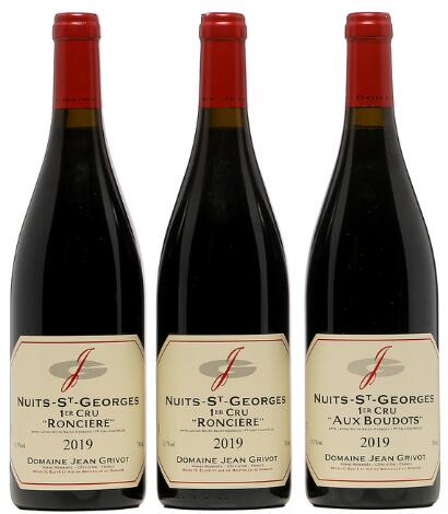 2 bts. Nuits Saint Georges 1. Cru "Roncière", Domaine Jean Grivot 2019 A (hf/in). etc. Total 3 bts.