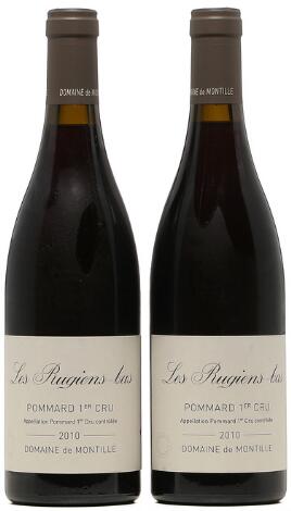 2 bts. Pommard 1. Cru "Les Rugiens", Domaine de Montille 2010 A (hf/in).