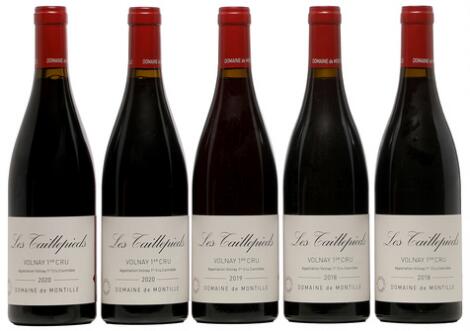 2 bts. Volnay 1. Cru "Les Taillepieds", Domaine de Montille 2020 A (hf/in). etc. Total 5 bts.