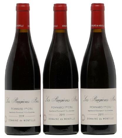 3 bts. Pommard 1. Cru "Les Rugiens", Domaine de Montille 2019 A (hf/in).