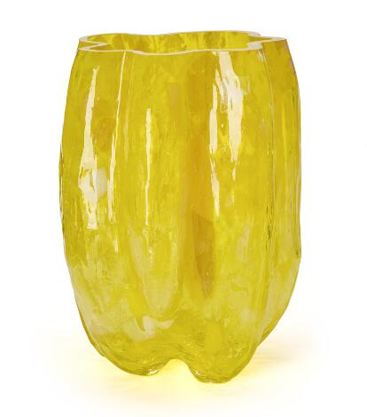 Åsa Jungnelius: "Crackle". Stor vase af mundblæst, gult krakeléglas. Udført hos Kosta Boda, Sverige. H. 37,5.