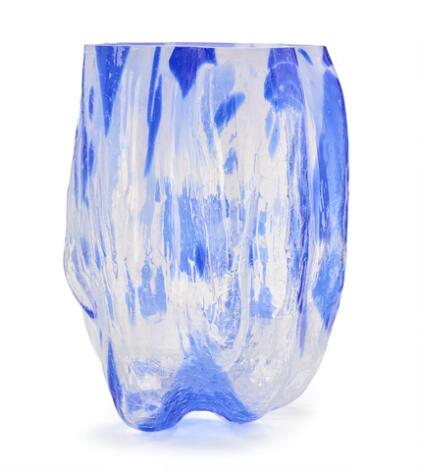 Åsa Jungnelius: "Crackle". Stor vase af mundblæst, blåt og klart krakeléglas. H. 38.