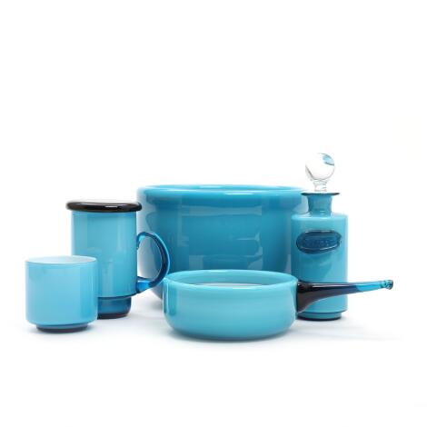 Michael Bang: "Palet". Køkkenserie af oceanblåt glas, bestående af fem dele. Udført hos Kastrup-Holmegaard. (5)