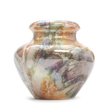 Arabia: Vase af fajance, dekoreret med marmoreret lustreglasur. H. 15
