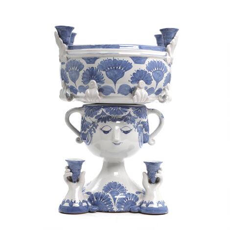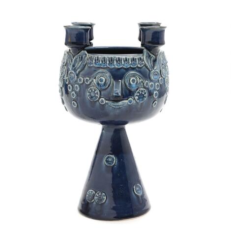 Bjørn Wiinblad: Todelt opsats af lertøj, modelleret i form af kvindeskikkelse med seks lysholdere. Unik. H. 49.