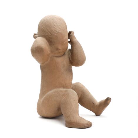 Therese Lucheschitz Jensen: Figur af sidende dreng. Sign. monogram. 3425, Kgl. P. Brændt, uglaseret lertøj. H. 30.
