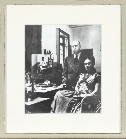 2549/170LyngbyOriginal black-and-white press photograph of Mexican painter Frida Kahlo (1907-1954) and her husband