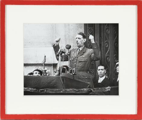 2549/162LyngbyOriginal black-and-white press photograph of French General Charles de Gaulle (1890-1970) in a characteristic pose