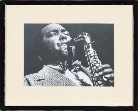 2549/245LyngbyOriginal black-and-white press photograph of American alto saxophonist, composer, and bandleader Charlie Parker