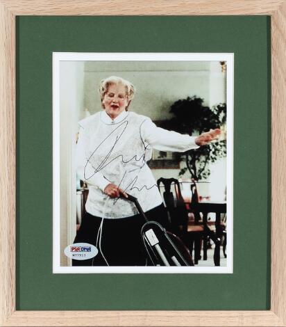 2550/159Lyngby'Mrs. Doubtfire'. Signed colour still photograph of American actor Robin Williams (1951-2014) in the role of Mrs. Doubtfire