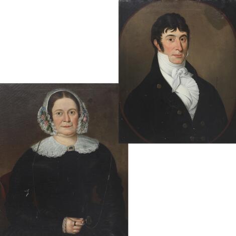2549/309English painter, 19th century: A pair of portraits of Henry and Jane Hadkins Unsigned. Oil on canvas. 76 x 63 and 71 x 59 cm. (2)