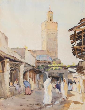2549/327Jean Gobaille: Maroccan townscape, 1940. Signed and dated. Watercolour on paper. Sheet size 63 x 49 cm.
