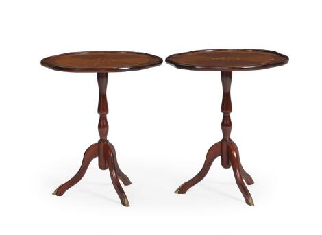 Et par lampeborde af massiv mahogni, plader med kehlet kant. H. 57. D. 50. (2)
