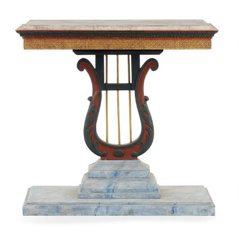 Svensk lyrekonsol af bemalet træ. Ca. 1840. H. 77. B. 80. D. 40.