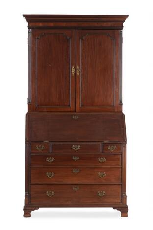 George III chatol af mahogni, med overskab hvori to fyldningsdøre. England, ca. 1760. H. 220. B. 112. D. 54.