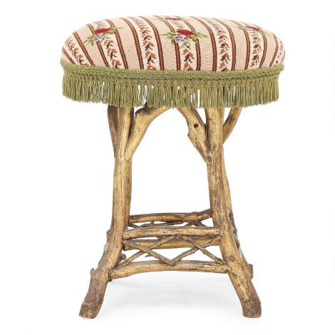 Kongelig dansk taburet af forgyldt træ. Under sædet papir etikette fra Amalienborg slot samt Christian IXs kronede spejlmonogram. 19. årh.s slutning.