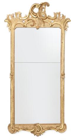 Dansk spejl i ramme af bronceret træ. Rococo form, 19. årh.s midte. H. 140. B. 69.