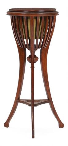 Engelsk vinkøler af mahogni med messing spand. 20. årh.s begyndelse. H. 92. Diam. 40.