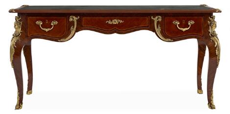 Fransk bureau plat af rosentræ med beslag af forgyldt bronze, plade med grønt gyldentrykt læder. 20. årh. H. 77. L. 162. B. 82.