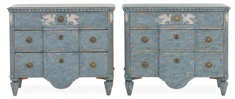 Et par svenske kommoder af bemalet træ. Gustaviansk form. 20. årh. H. 78. B. 93. D. 53. (2)